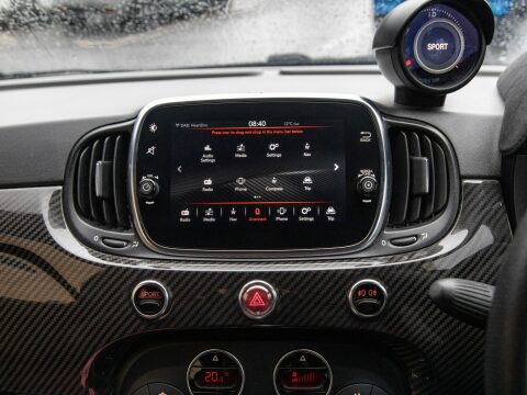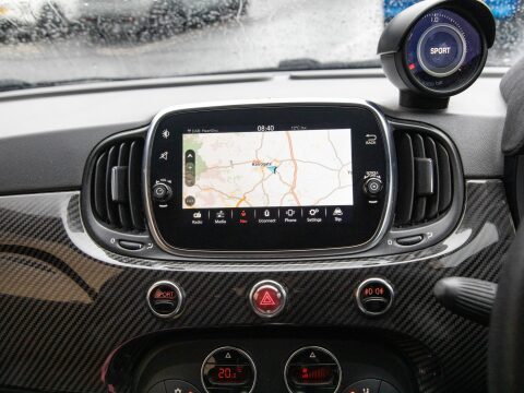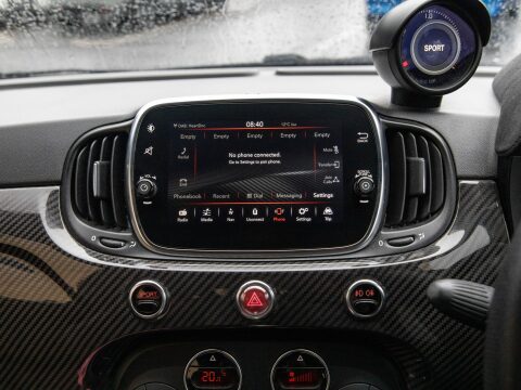 This 2019 Abarth 595 T Jet EsseEsse 70th is a special edition celebrating 70 years of Abarth, offering a unique blend of performance and style. Powered by a lively 1.4 litre petrol engine, this Euro 6 compliant model delivers an exhilarating 0-60mph time of just 6.7 seconds. Inside, you'll find a striking carbon fibre finished dashboard that adds a touch of sportiness. The 7 inch touchscreen radio comes equipped with navigation, Bluetooth connectivity, USB, and DAB digital radio, seamlessly integrating with Apple CarPlay and Android Auto for your convenience. Enjoy a comfortable driving experience with automatic climate control and benefit from the ease of rear parking sensors. Factory fitted Akrapovic exhaust adds a deeper tone, enhancing the driving experience.