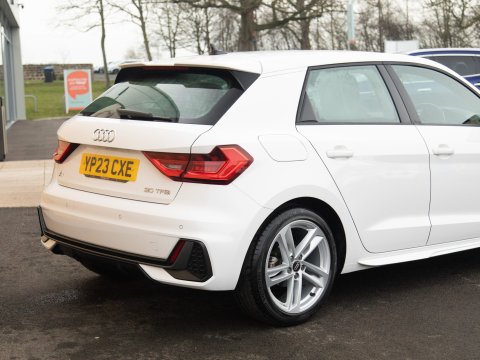 This 2023 Audi A1 TFSI S line is a superb example, having had only one owner since new. This stylish hatchback boasts a 1.0 litre Euro 6 compliant petrol engine, ensuring an efficient drive. The S line trim level enhances its sporty appeal, and you'll appreciate the convenience of rear parking sensors, manual air conditioning, and a Bluetooth interface for seamless connectivity. Driving is made easier and safer with LED headlights, LED rear lights featuring dynamic rear indicators, and automatic headlights activated by light and rain sensors. Apple CarPlay keeps you connected on the move, while cruise control eases those longer journeys.