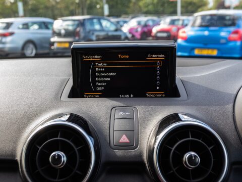 This 2018 Audi A1 TFSI Black Edition boasts exceptionally low mileage for its age, having covered just 24,432 miles. As a Euro 6 compliant vehicle, it features a 1.4 litre petrol engine and comes in the desirable Black Edition trim. Notable features include a satellite navigation system with SD card based functionality and Bluetooth connectivity, further enhanced by the Connectivity Package which also includes Bluetooth. For convenience and safety, it is equipped with a light and rain sensor that automatically activates the headlights, which are also Xenon for superior illumination. Electronic climate control ensures a comfortable cabin environment. The panoramic roof floods the cabin with natural light creating an airy feel to the car.