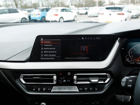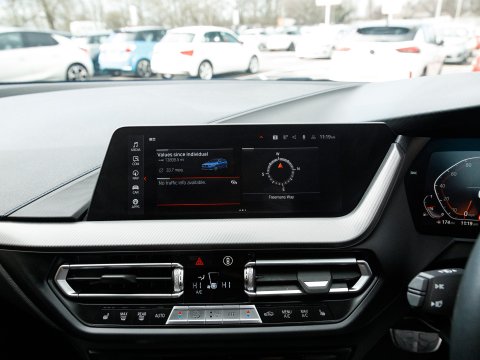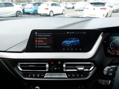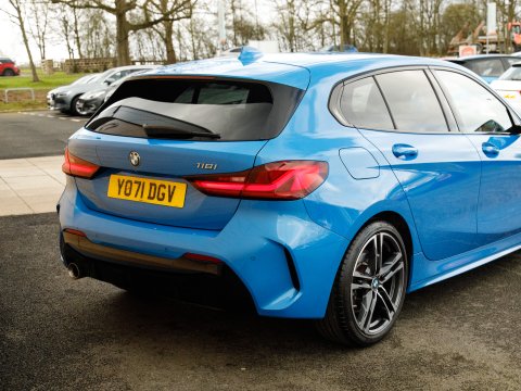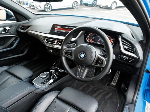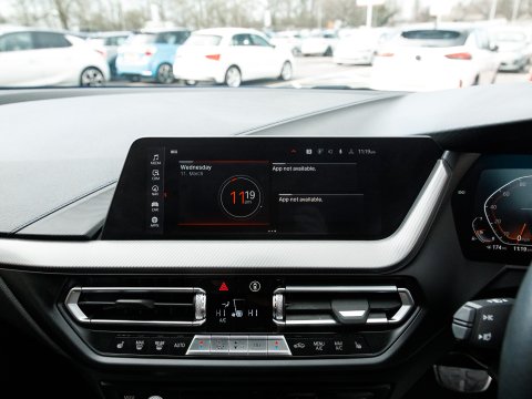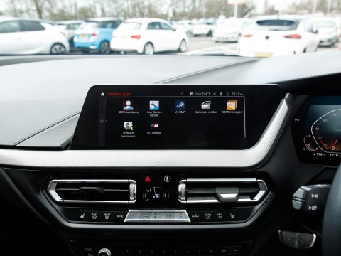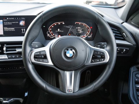 This 2022 BMW 1 Series 118i M Sport is a superb example, boasting exceptionally low mileage of just 13856 miles and having had only one owner from new. This Euro 6 compliant model features a responsive 1.5 litre petrol engine and is presented in the desirable M Sport trim. Inside, you'll find the comfort of perforated Dakota leather upholstery in black with a striking blue highlight, complemented by heated seats for both the driver and front passenger. Apple CarPlay keeps you connected, while Front and Rear Parking Sensors ease manoeuvring.