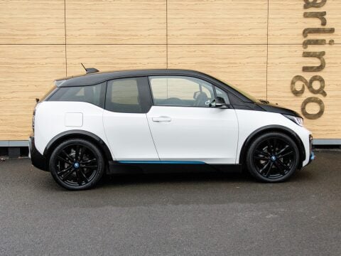 Discover this 2020 BMW i3 S, This model boasts a 42 kWh battery, providing a maximum range of 175 miles when new. Charging is convenient, with a full charge at home taking approximately 5 hours and 15 minutes using a 7kW charger, and a rapid 40 minutes to reach 80% charge at a public charging station. The BMW i3 S is equipped with a suite of advanced features designed to enhance your drive. These include the Driving Assistant Plus package with adaptive cruise control, an auxiliary cabin heating system for comfort in all weather, and a reversing assist camera with rear parking assistance. Illuminate your path with BMW Icon Adaptive LED headlights, and immerse yourself in superior sound with the Harman Kardon loudspeaker system. The addition of Air Con ensures a pleasant journey in all conditions while the Sat Nav keeps you on track on those long journeys.