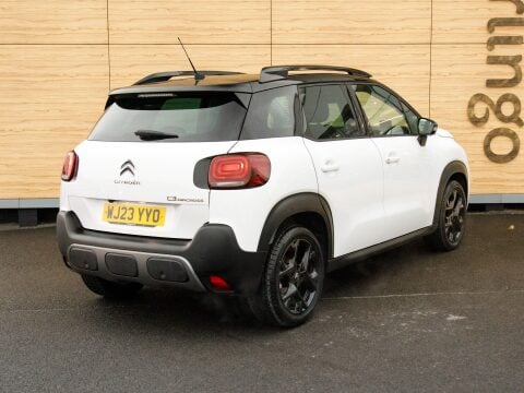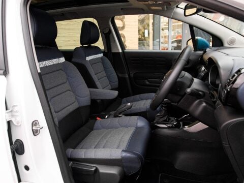 This 2023 Citroen C3 Aircross Rip Curl is a superb example, having had only one owner since new. This stylish compact SUV is powered by an efficient 1.2 litre petrol engine, meeting Euro 6 emissions standards. It boasts a range of desirable features designed for comfort and convenience, including keyless entry and start and automatic air conditioning. The addition of Front and Rear Parking Sensors and a top rear vision Reversing Camera make parking effortless. Enjoy the open air with the opening panoramic roof and sunblind, and benefit from the Sight and Sound Pack which includes a head up display for enhanced driving awareness. Sat Nav will keep you connected and on track on those longer journeys.