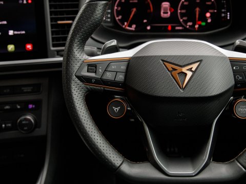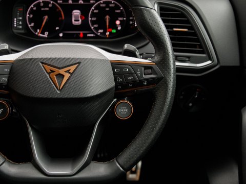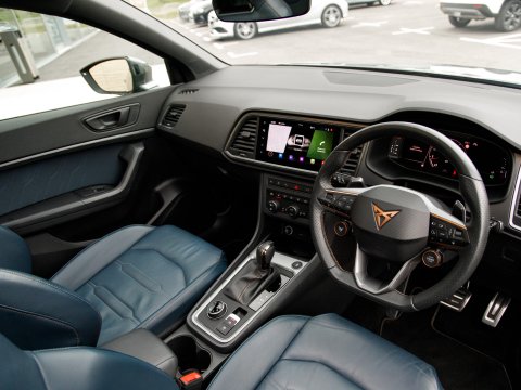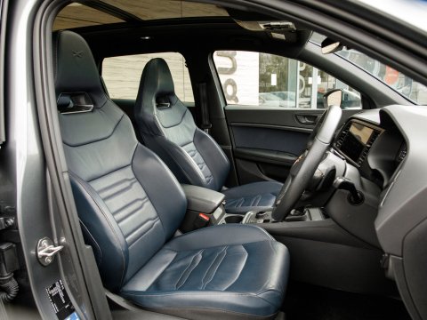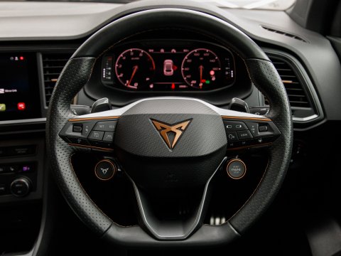 This 2022 CUPRA Ateca TSI VZ3 boasts exceptionally low mileage for its year, having covered just 23027 miles. As a Euro 6 compliant model, this four wheel drive SUV is powered by a 2.0 litre petrol engine, The VZ3 trim level comes equipped with a suite of convenient features, including keyless entry for effortless access. The Safe and Driving Pack which incorporates adaptive cruise control and a front camera for enhanced parking assistance. Sat Nav will keep you connected and on course for those longer journeys while the panoramic sunroof will flood the cabin with natural light adding to the driving experience. Further enhancing its practicality, the Convenience Pack ensures automatic headlights, while the inclusion of a heated steering wheel and a wireless phone charger add a touch of everyday luxury.