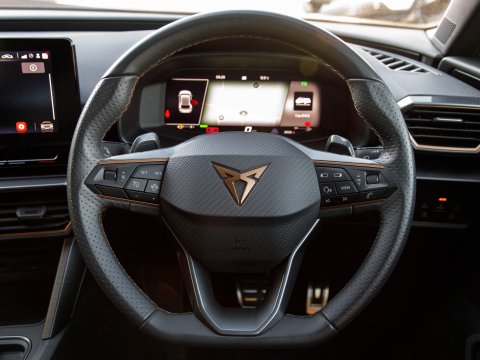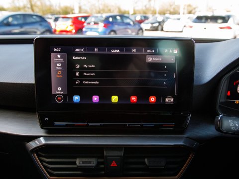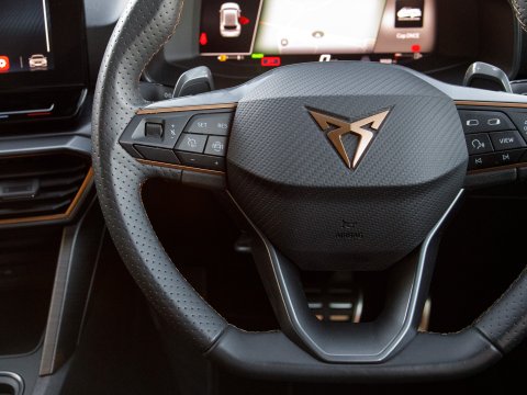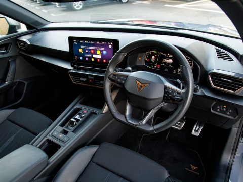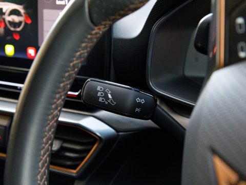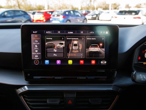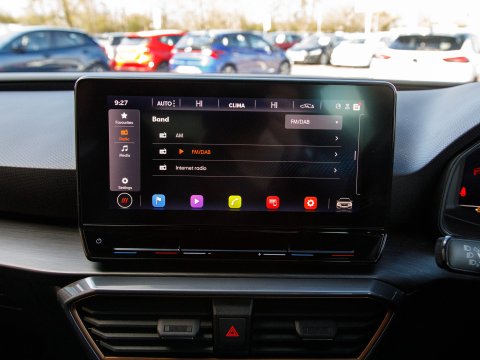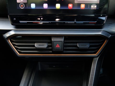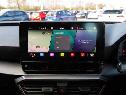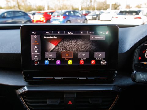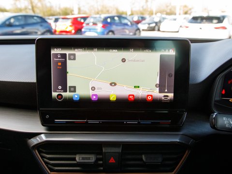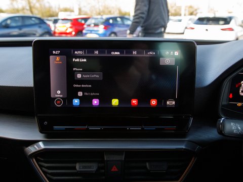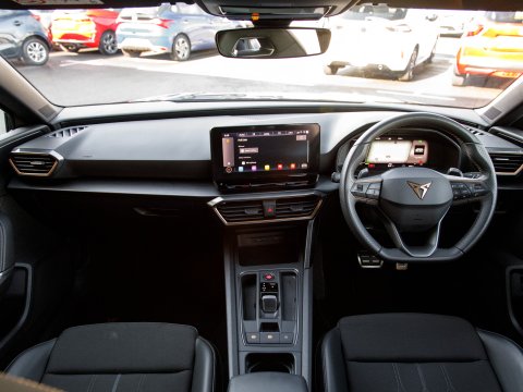 This 2021 CUPRA Leon eHybrid VZ2 presents a remarkable opportunity with its exceptionally low mileage of just 30527 miles for its age. This Euro 6 compliant plug in hybrid combines a 1.4 litre petrol engine with electric power, offering an impressive 0-60mph acceleration time of 6.7 seconds. The VZ2 trim level ensures a premium experience, featuring a CUPRA leather flat bottomed, heated, and perforated steering wheel with gearshift paddles, alongside LED headlights with dynamic turn signals and automatic headlight control with a coming home feature. Convenience is further enhanced by KESSY Advanced keyless entry and start, and three zone climate control to ensure comfort for all occupants. Sat Nav and Apple CarPlay keep you on track on those longer journeys, while Parking Sensors ease manoeuvring.