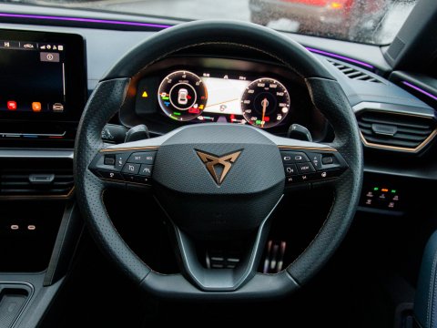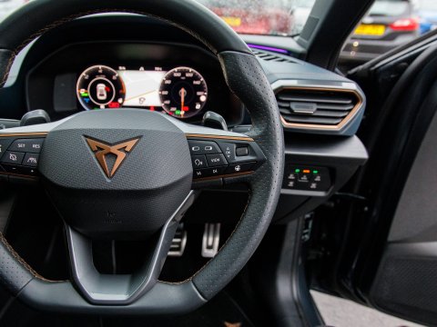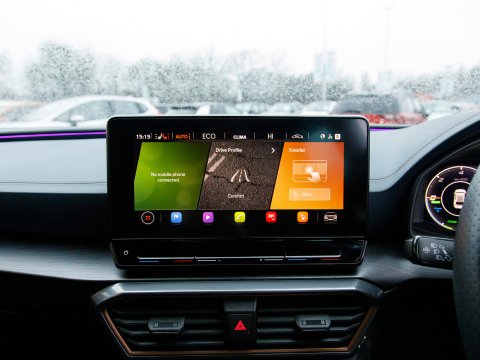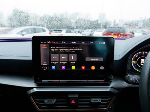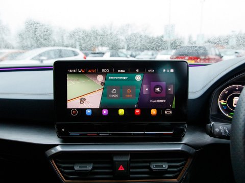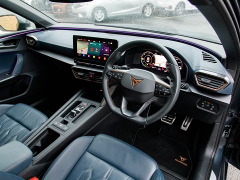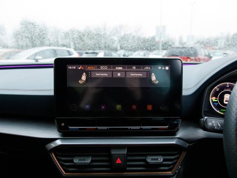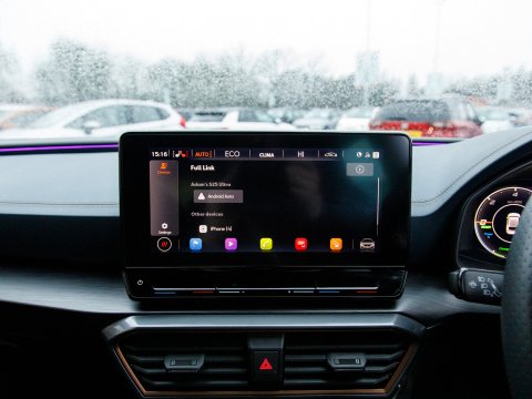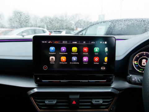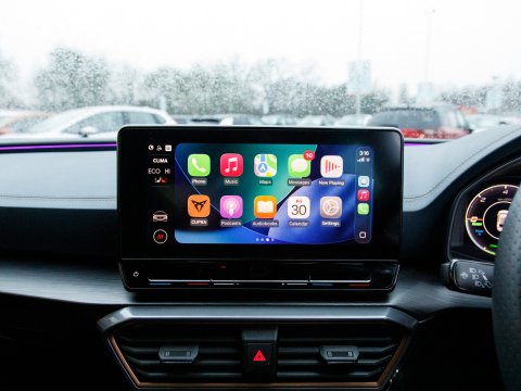 This 2022 CUPRA Leon eHybrid VZ3 presents an exceptional opportunity with remarkably low mileage for its year, having covered just 25,378 miles. As a Euro 6 compliant plug in hybrid, it combines a 1.4 litre petrol engine with electric power, offering an efficient and dynamic driving experience. This VZ3 trim level comes equipped with advanced features designed for convenience and safety, including LED headlights with dynamic turn signals, KESSY Advanced keyless entry and start, and Full Link smartphone integration for seamless access to Android Auto and Apple CarPlay. The inclusion of separate daytime running lights with automatic headlight control and a rear view camera further enhances its usability. Sat Nav keeps you on track on those longer journeys, while Heated front seats keep you comfortable. Parking sensors ease manoeuvring.