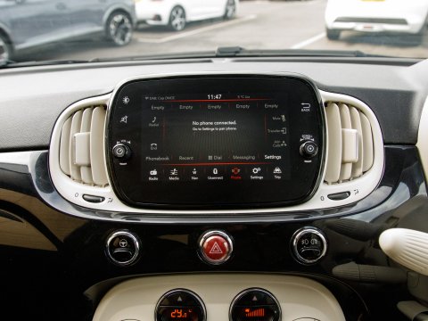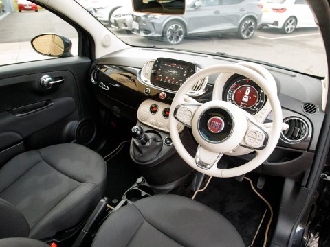 Discover this exceptional 2023 Fiat 500 with remarkably low mileage for its year, having covered just 13,683 miles. This stylish city car is powered by an efficient 1.0 litre petrol engine, meeting Euro 6 emissions standards. Inside, you'll find a user friendly 7in HD touchscreen radio complete with Bluetooth connectivity for calls and music, a USB port, and DAB digital radio. Convenience is further enhanced by rain and dusk sensors that automatically activate the headlights, and seamless integration with your smartphone via Apple CarPlay and Android Auto. Enjoy a comfortable cabin with air conditioning and a fixed panoramic sunroof, perfect for letting in natural light.