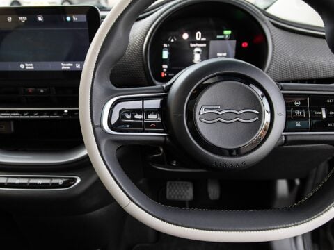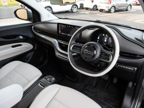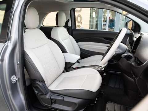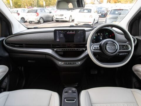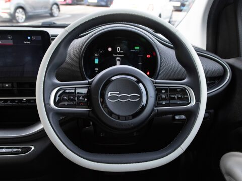 This 2022 Fiat 500e La Prima is a superb example, having been owned by only one person since new. This electric city car boasts a 42 kWh battery, offering a maximum range of 193 miles when fully charged. The La Prima trim level comes equipped with a host of desirable features designed to enhance your driving experience. Enjoy seamless smartphone integration with wireless Apple CarPlay and Android Auto, and keep your devices powered up with the wireless mobile phone charger. Navigating tight spaces is made easier with rear parking sensors, while the striking LED headlights ensure excellent visibility. Furthermore, the fixed panoramic sunroof floods the cabin with natural light, creating a bright and airy atmosphere. Sat Nav assists on those longer journeys.