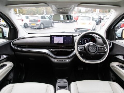 This 2022 Fiat 500e La Prima is a standout electric vehicle, boasting exceptionally low mileage for its age, having covered just 7805 miles, and benefiting from a single owner since new. This stylish electric hatchback features a 42 kWh battery, offering a maximum range of 193 miles on a full charge. Recharging is convenient, with a full charge at home using a 7kW charger taking approximately 6 hours, and rapid charging to 80% possible in just 35 minutes at compatible public stations. The La Prima trim comes equipped with desirable features including an Easy Wallbox for home charging, a Winter Pack with heated seats for comfort in colder weather, and automatic air conditioning with climate control. Connectivity is seamless with wireless Apple CarPlay and Android Auto, and parking is made easier with rear parking sensors. Enjoying the open air is easy with the fixed panoramic sunroof creating an airy feel to the vehicle.