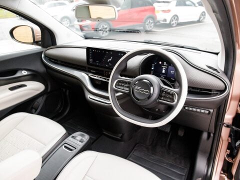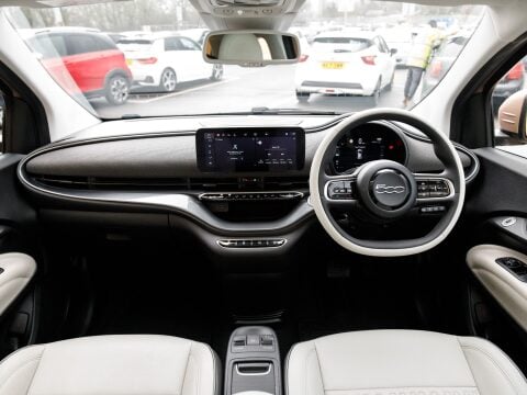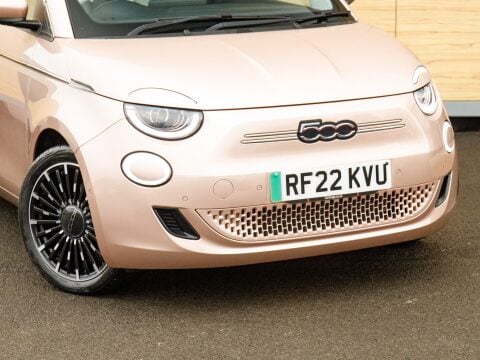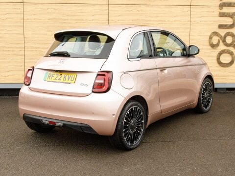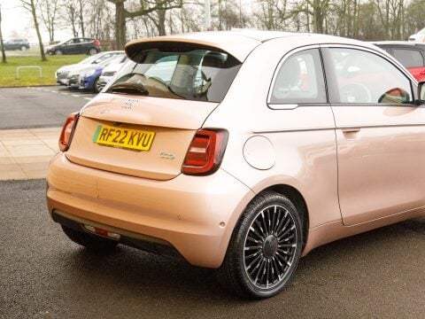 Discover this 2022 Fiat 500e La Prima, With its 42 kWh battery this model boasts a maximum range of 193 miles when new. The La Prima trim level comes equipped with a host of desirable features designed to enhance your driving experience. Enjoy the open air with the panoramic sunroof, and navigate tight spaces with ease thanks to the Rear Camera and Parking sensors. Sat Nav will keep you on track on those long journeys. Stay connected and entertained with wireless Apple CarPlay and Android Auto, while the automatic air conditioning ensures a comfortable cabin temperature. The distinctive LED headlights provide excellent visibility, ensuring you stand out and drive with confidence.