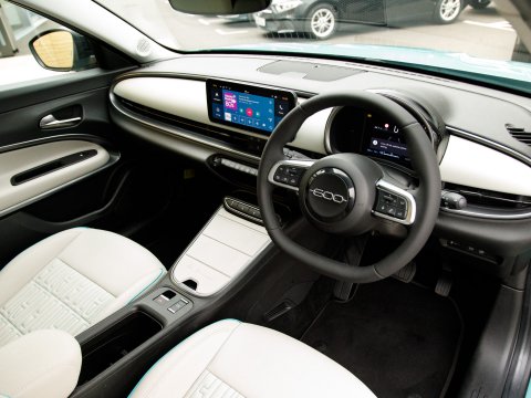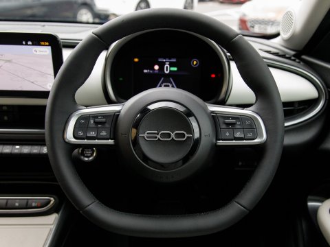 This 2024 Fiat 600e La Prima presents an exceptional ownership proposition, boasting a single owner and a remarkably low mileage of just 6,023 miles for its age, with a clear vehicle history check. As an all electric model, it features a 54 kWh battery with a battery health of 97%, offering a maximum range of 252 miles when new. This La Prima variant comes equipped with a suite of advanced features, including automatic LED headlights activated by rain and dusk sensors, front heated seats for enhanced comfort, and adaptive cruise control with Level 2 autonomous driving capabilities. Parking is made effortless with front, side, and rear parking sensors complemented by a 180 degree rear view camera