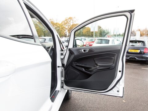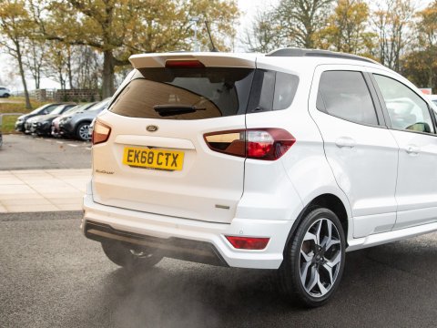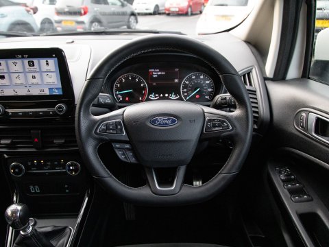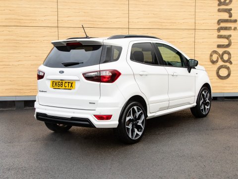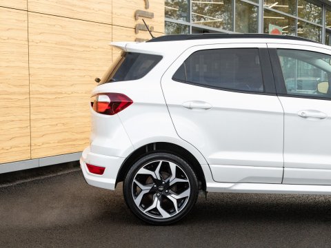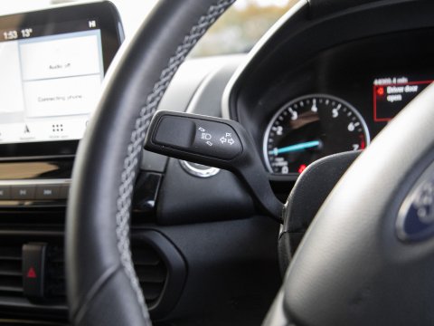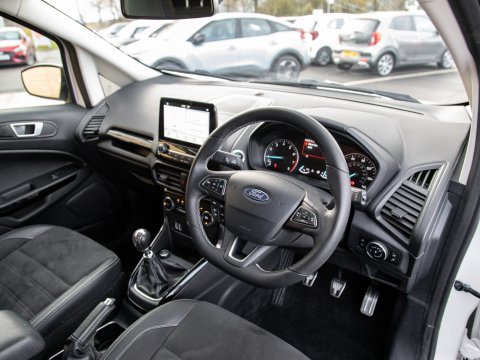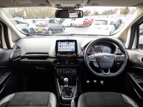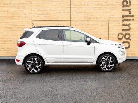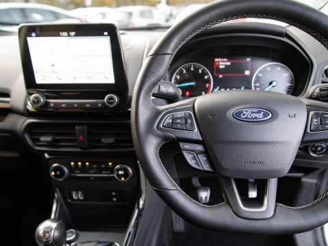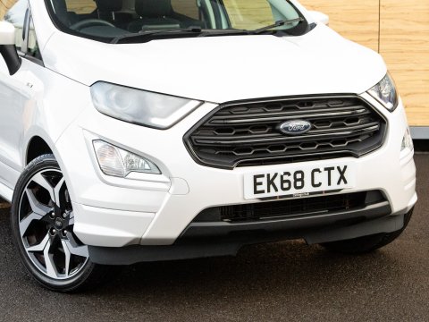 This 2018 Ford EcoSport T ST-Line is a superb example, having been owned by just one careful keeper from new. This stylish compact SUV boasts a responsive 1.0L petrol engine and meets Euro 6 emissions standards, making it an efficient choice. Inside, you'll find the convenient Ford Navigation System with Ford SYNC 3, offering seamless integration with Apple CarPlay and Android Auto, alongside Bluetooth connectivity. For added peace of mind, it features a rear view camera and rear parking sensors to assist with manoeuvring. The practical interior includes a 60-40 split folding rear seat, and the exterior is enhanced with distinctive ST-Line bumpers and side skirts, complemented by halogen headlamps with LED daytime running lights.