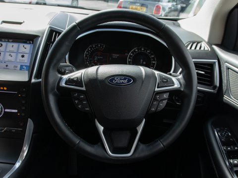 This 2017 Ford Edge TDCi Sport presents a remarkable opportunity with its exceptionally low mileage of just 55,949 miles for its age. This four wheel drive model is powered by a robust 2.0 litre diesel engine, meeting Euro 6 emission standards. The Sport trim level enhances its appeal, offering a refined driving experience. Inside, you'll find comfort and convenience with heated front sports seats and a premium Sony DAB audio system featuring 12 speakers and navigation. The SYNC 3 system provides an 8 inch colour touchscreen with Bluetooth and voice control, alongside emergency assistance. Parking is made effortless with front and rear parking sensors and a rear view camera.