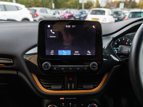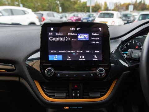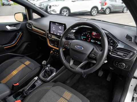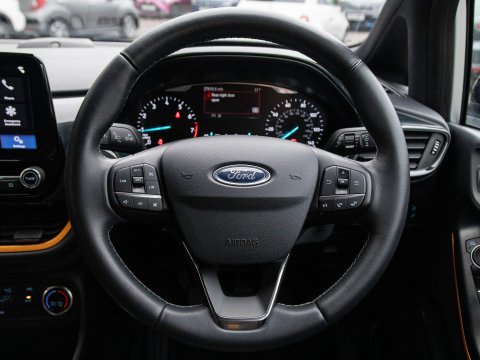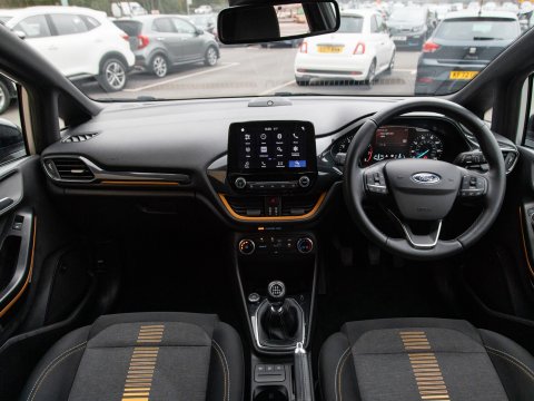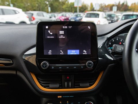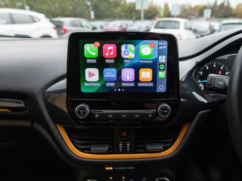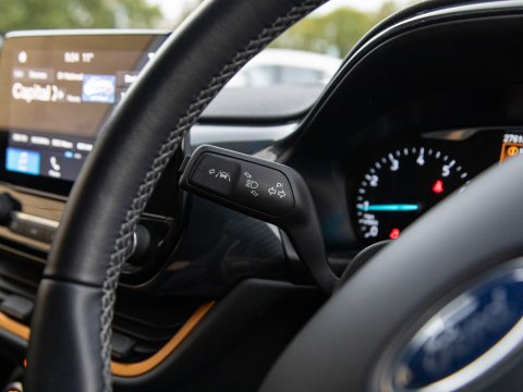 Boasting exceptionally low mileage for its age, this 2019 Ford Fiesta T Active B&O Play presents a superb ownership opportunity. With only one previous owner, this Euro 6 compliant 1.0L petrol model has covered just 27,613 miles. The Active B&O Play trim level ensures a premium experience, featuring the impressive B and O PLAY In-Car Audio Premium Sound System, complete with Android Auto and Apple CarPlay for seamless smartphone integration, alongside Bluetooth connectivity. For enhanced safety and convenience, it includes the NCAP Pack with automatic headlights, and manual air conditioning to keep you comfortable on every journey.