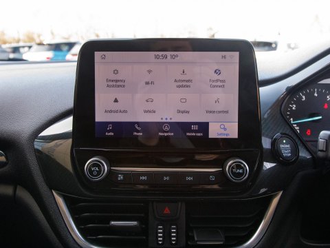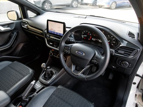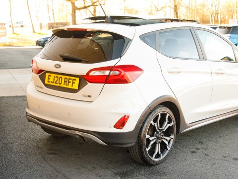 Discover this exceptional 2020 Ford Fiesta T Active X Edition, boasting remarkably low mileage of just 12,842 miles, making it a standout choice for its age. This Euro 6 compliant model is powered by an efficient 1.0L petrol engine and features the desirable Active X Edition trim. It comes equipped with a panoramic sunroof flooding the cabin with natural light and a comprehensive NCAP Pack including automatic headlights. For your comfort, electronic automatic temperature control air conditioning. Entertainment and connectivity are elevated by the B and O PLAY premium sound system, integrated with Ford SYNC 3 Navigation and FordPass Connect, offering seamless Android Auto and Apple CarPlay integration. Further enhancing convenience are rear parking distance sensors and wireless phone charging.
