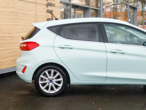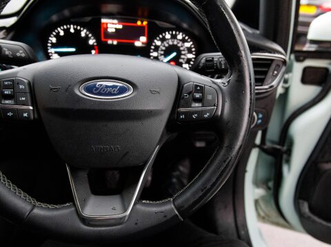 This 2018 Ford Fiesta Titanium B&O Play Series presents a remarkable opportunity with its exceptionally low mileage of just 34,824 miles. Powered by an efficient 1.0 litre petrol engine, this Euro 6 compliant model offers a compelling blend of performance and economy. Its Titanium B&O Play Series trim ensures a premium experience, featuring automatic on-off and highbeam headlights for enhanced visibility, and electronic automatic temperature control for effortless cabin comfort. Experience superior audio with the B&O PLAY premium sound system, seamlessly integrated with the Ford SYNC 3 navigation system, supporting both Android Auto and Apple CarPlay for effortless connectivity.