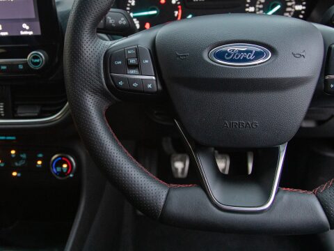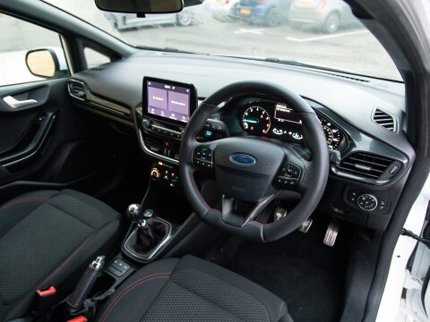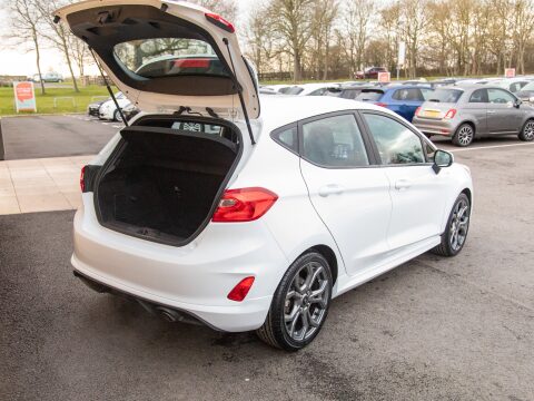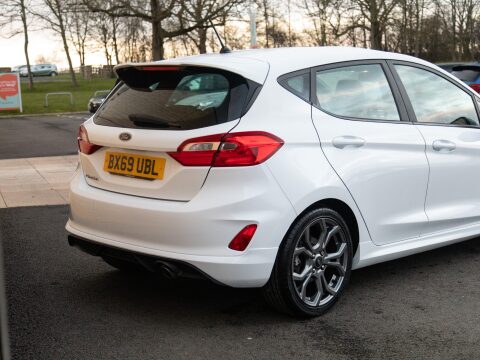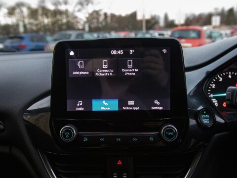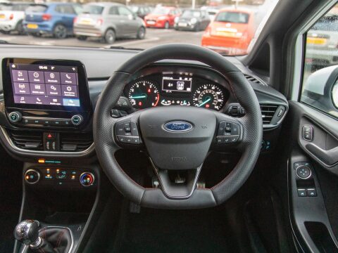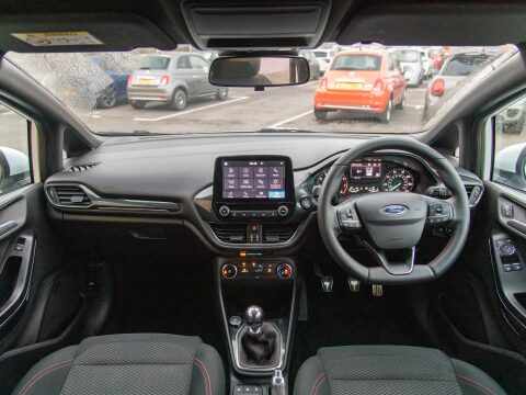 This 2019 Ford Fiesta ST Line offers exceptional value with its remarkably low mileage of just 44,404 miles. This popular hatchback is powered by an efficient 1.0L petrol engine, meeting Euro 6 emissions standards and contributing to its low CO2 emissions. The ST Line trim brings a sporty feel, enhanced by features like automatic headlights and the convenient NCAP Pack. Inside, you'll find the Ford SYNC system with a touchscreen, DAB radio, and seamless integration for Apple CarPlay and Android Auto, alongside manual air conditioning for your comfort.
