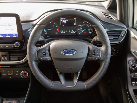 This 2021 Ford Fiesta ST-Line Edition presents an exceptional ownership proposition, having been driven by just one owner. As a Euro 6 compliant 1.0L petrol model, it combines sporty ST-Line styling with practical everyday usability. Inside, you'll find the advanced Ford Navigation System featuring Ford SYNC 3, which seamlessly integrates with both Apple CarPlay and Android Auto, alongside FordPass Connect for connected services. Parking is made easier with rear parking distance sensors, and the NCAP Pack includes automatic headlights for added convenience and safety. The LED projector headlights with daytime running lights ensure excellent visibility.Â