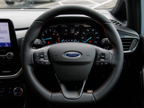 Discover this exceptional 2021 Ford Fiesta ST-Line Edition, boasting remarkably low mileage for its age at just 21,340 miles. This Euro 6 compliant 1.0L petrol model offers a compelling blend of sporty design and practical technology. It comes equipped with the desirable Exclusive Pack, which includes adaptive cruise control for effortless journeys, and the Ford Navigation System featuring SYNC 3, providing seamless integration with Apple CarPlay and Android Auto. Further enhancing convenience are manual air conditioning, automatic headlights thanks to the NCAP Pack, and rear parking distance sensors to aid manoeuvrability. FordPass Connect with an embedded modem is also included, further expanding connectivity options.