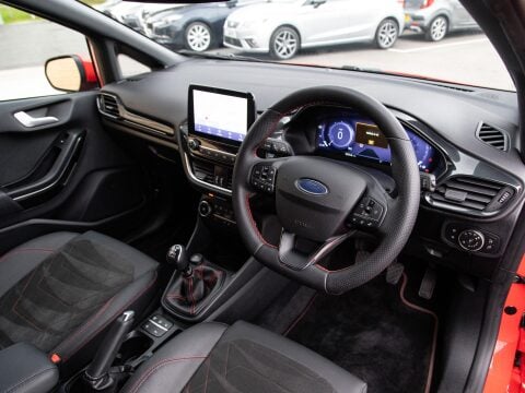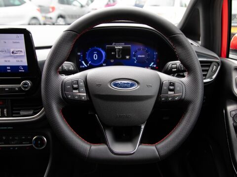 This 2023 Ford Fiesta ST-Line X Edition is a superb example of a modern compact car, boasting a 1.0L petrol engine that meets Euro 6 emissions standards. As a T ST-Line X Edition variant, it comes with the desirable ST-Line X Edition trim, offering a blend of sporty styling and advanced technology. You'll appreciate the convenience of LED projector headlights with integrated daytime running lights, alongside automatic headlights for effortless driving. The interior is designed for comfort and entertainment, featuring electronic automatic air conditioning for precise climate control and rear parking distance sensors to aid manoeuvring. The B and O PLAY premium sound system, integrated with the Ford SYNC 3 navigation system and FordPass Connect, provides an exceptional audio experience and seamless connectivity with Android Auto and Apple CarPlay.