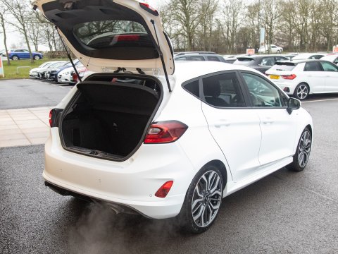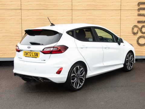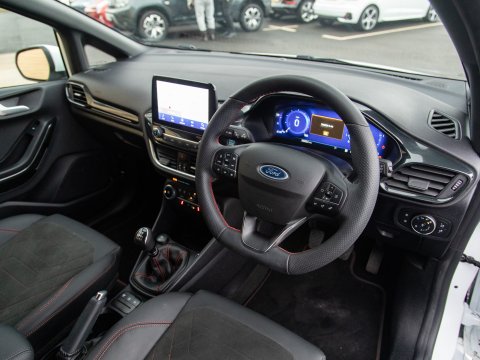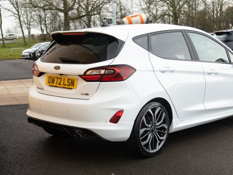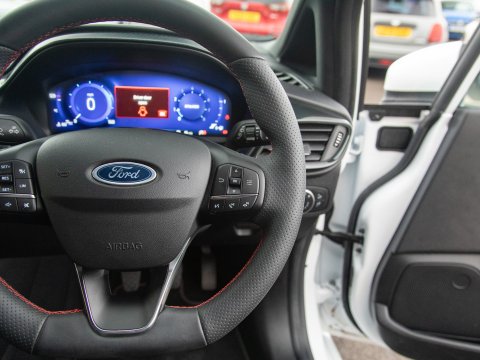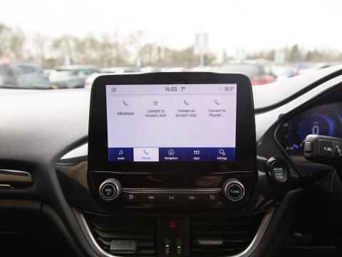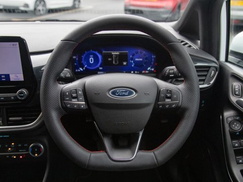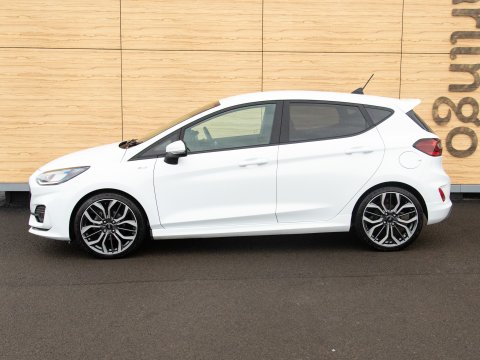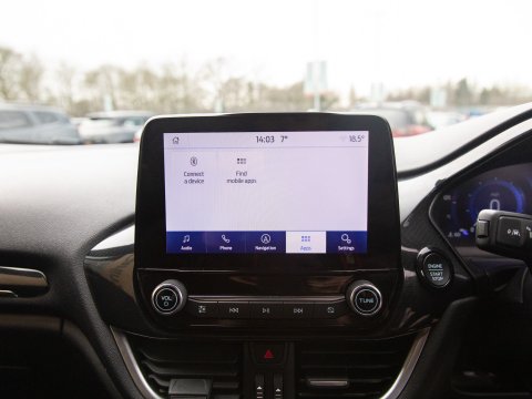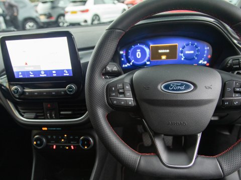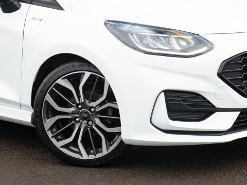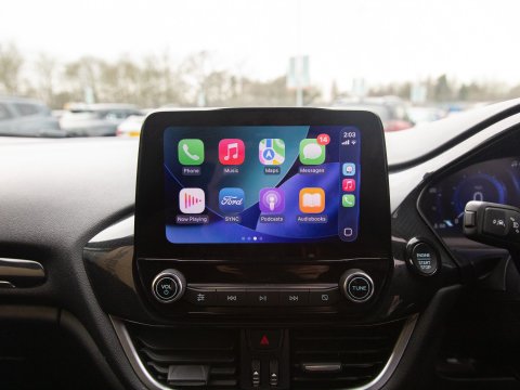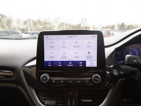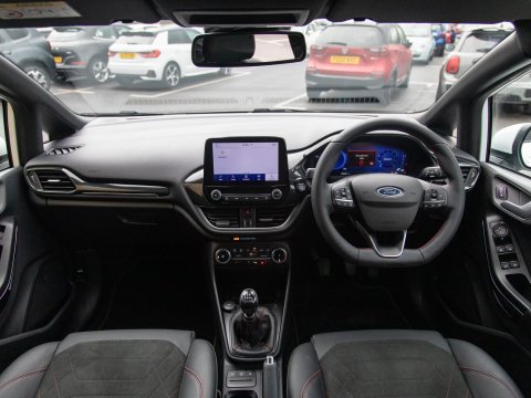 This 2023 Ford Fiesta ST-Line X Edition presents an exceptional ownership opportunity, having been meticulously maintained by a single owner from new. This Euro 6 compliant 1.0L petrol model boasts an impressive fuel economy of 58 miles per gallon, making it an economical choice for daily driving. The ST-Line X Edition trim level ensures a sporty aesthetic and a wealth of advanced technology. Key features include the Driver Assistance Pack, which incorporates Blind Spot Assistance, Adaptive Cruise Control, and front and rear parking sensors with a rear camera, enhancing safety and convenience. The Ford KeyFree System allows for keyless entry, while the Electronic Automatic Temperature Control air conditioning ensures a comfortable cabin environment. Satellite Navigation (SatNav) is included, to help you to your destination, and Automatic headlights are also included as part of the NCAP Pack.