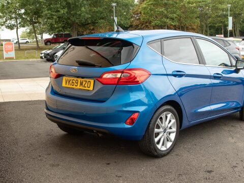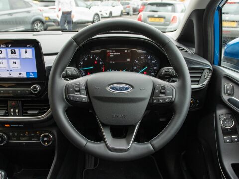 Discover this exceptional 2019 Ford Fiesta T Titanium, boasting remarkably low mileage for its age with only 29,510 miles covered by its single owner. This Euro 6 compliant 1.0L petrol model offers a smooth driving experience and is equipped with a comprehensive NCAP Pack, featuring automatic headlights for enhanced visibility. Inside, you'll find the Ford Navigation System with Ford SYNC 3, offering seamless integration with Apple CarPlay and Android Auto, alongside FordPass Connect for connected services. The Electronic Automatic Temperature Control ensures a comfortable cabin environment, automatically managing the climate for your convenience. Cruise control eases those longer journeys, while Parking sensors help in those tighter spots.