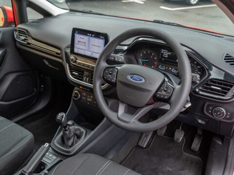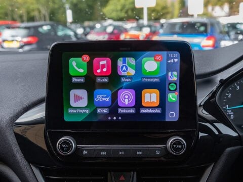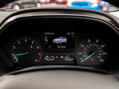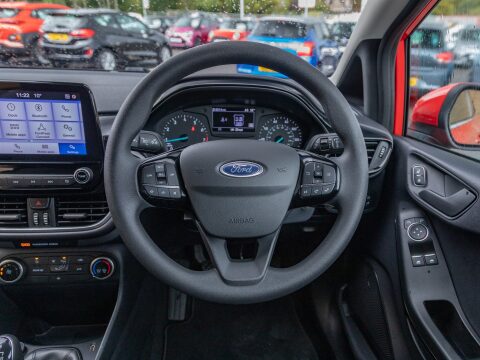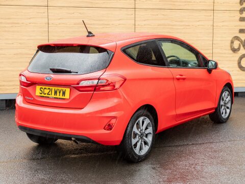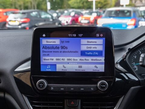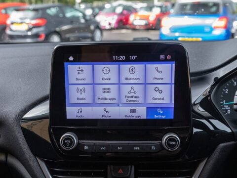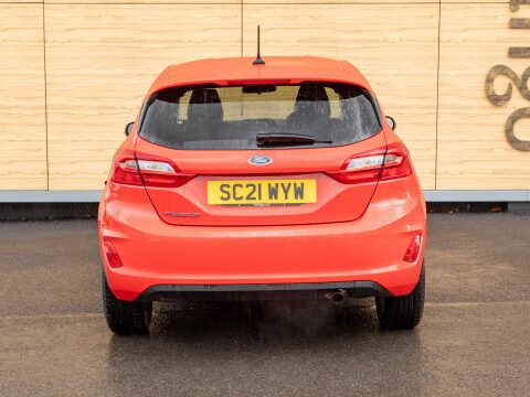 This 2021 Ford Fiesta T Trend is a superb example, having been cherished by just one owner and boasting exceptionally low mileage for its age, having covered only 21,414 miles. This popular hatchback is powered by an efficient 1.0 litre petrol engine, meeting Euro 6 emissions standards. It comes equipped with stylish LED projector headlights featuring daytime running lights, and for your comfort, manual air conditioning. The NCAP pack includes automatic headlights, enhancing safety and convenience. Stay connected and entertained with Ford SYNC, which includes a DAB radio, Apple CarPlay, Android Auto, and the FordPass Connect embedded modem, all accessible via the responsive touchscreen.