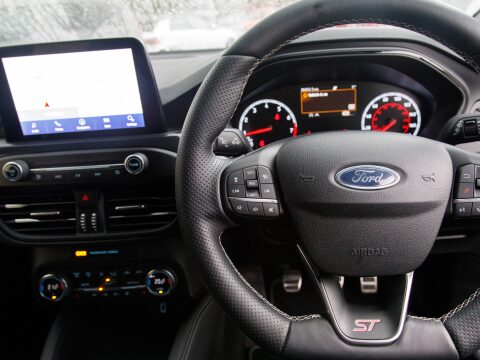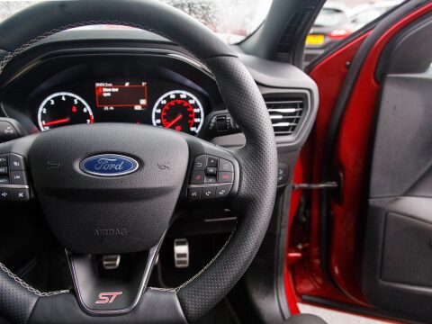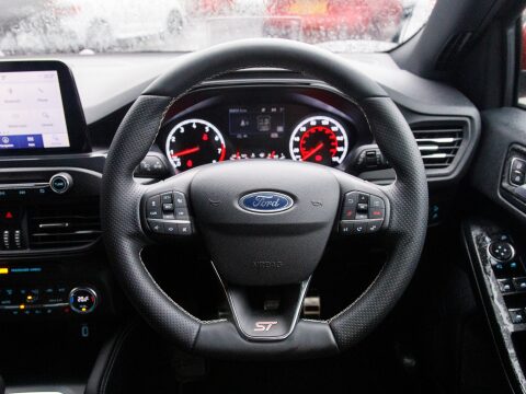 This 2019 Ford Focus ST offers an exceptional driving experience with remarkably low mileage for its age, having covered just 26,444 miles. Powered by a potent 2.3 litre petrol engine and meeting Euro 6 emissions standards, this ST variant is equipped with a suite of advanced features designed for comfort and convenience. These include front and rear parking sensors with parking camera, an adaptive front lighting system with LED headlights, and a heated steering wheel for those colder mornings. Inside, you'll find driver and passenger heated seats, ensuring a pleasant journey for everyone. Sat Nav keeps you on track on those longer journeys, while the Heads Up Display ensures your eyes stay on the road. This car is complete with the Ford Performance Pack, including KW adjustable coilover suspension, Brembo brakes with larger discs, 19-inch Ford Performance wheels, and a mechanical limited-slip differential (eLSD), enhancing handling, braking, and grip for serious driving on circuits, while also bringing features like launch control for a more engaging experience.