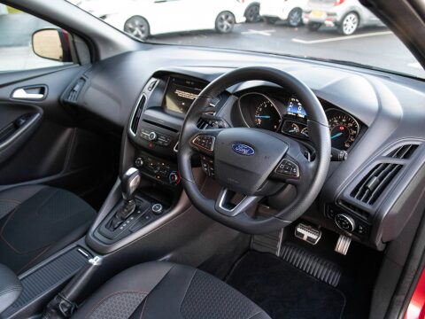 Discover this 2017 Ford Focus T ST Line with exceptionally low mileage for its age, having covered just 38165 miles. This Euro 6 compliant model boasts a 1.5 litre petrol engine and comes equipped with manual air conditioning for your comfort, alongside the Ford SYNC3 DAB Navigation System to keep you connected and on the right path. Parking Sensors ease manoeuvring in those tighter spots.