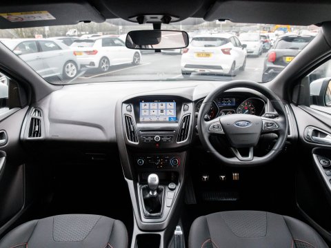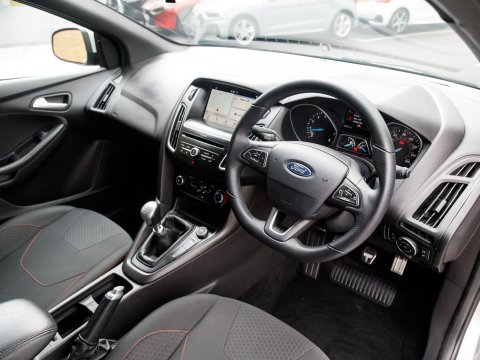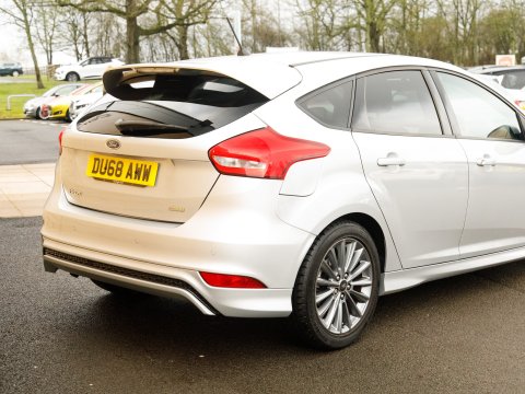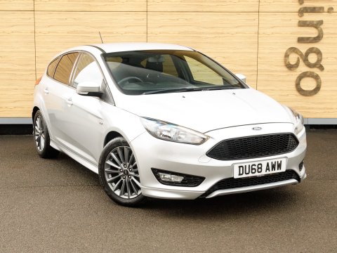 This 2018 Ford Focus ST-Line presents an exceptional opportunity with its remarkably low mileage of just 36,630 miles. This 1.0 litre petrol model, finished in the sporty ST-Line trim, is a Euro 6 compliant vehicle, ensuring efficient performance. Inside, you'll find manual air conditioning to keep you comfortable on every journey. Sat Nav keeps you connected and on course for those long journeys while Parking Sensors ensure manoeuvrability is effortless.