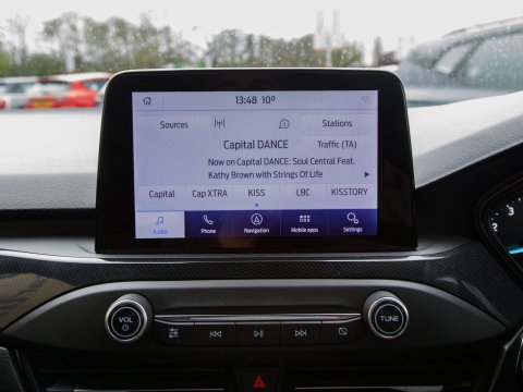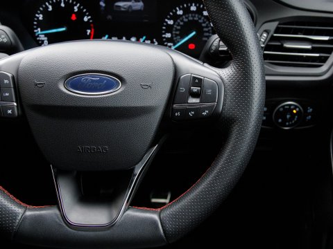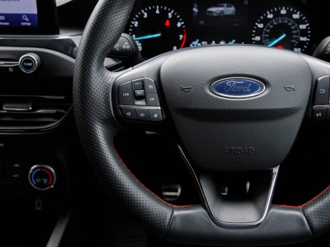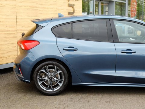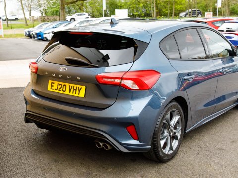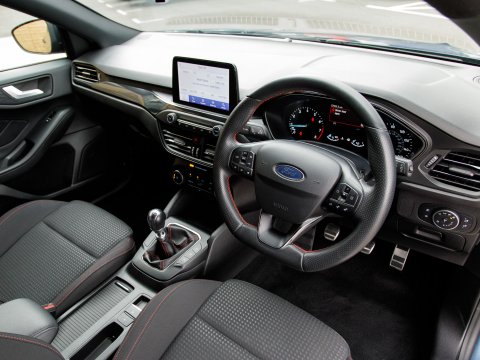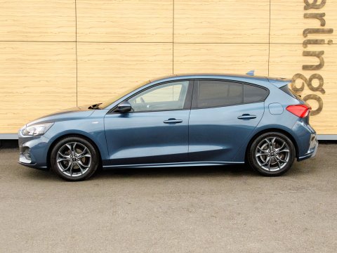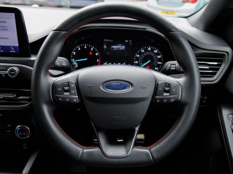 This 2020 Ford Focus ST ST Line presents a remarkable opportunity with its exceptionally low mileage of just 37,800 miles. This popular hatchback is powered by an efficient 1.0 litre petrol engine, meeting Euro 6 emissions standards. Inside, you'll find a user friendly Ford SYNC system featuring an 8 inch TFT touchscreen, compatible with both Android Auto and Apple CarPlay, alongside FordPass Connect for enhanced connectivity. The ST Line trim ensures a sporty feel, complemented by automatic on-off headlights and manual air conditioning for your comfort. Sat Nav keeps you connected and on course for those longer journeys while parking sensors make manoeuvrability effortless.