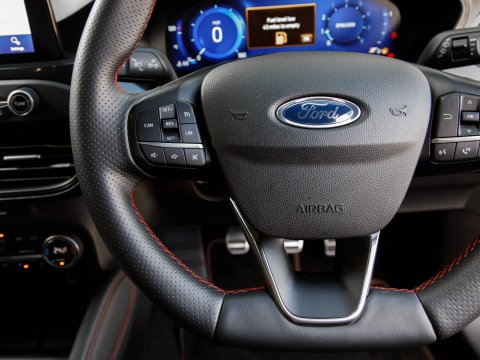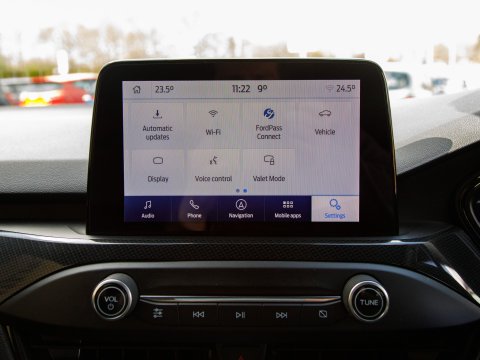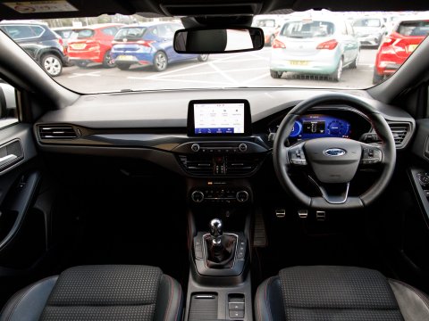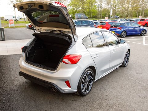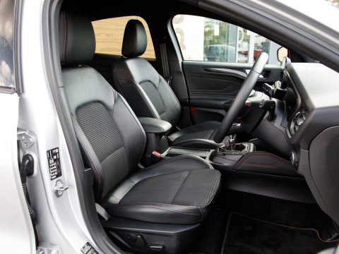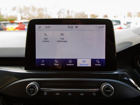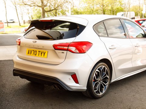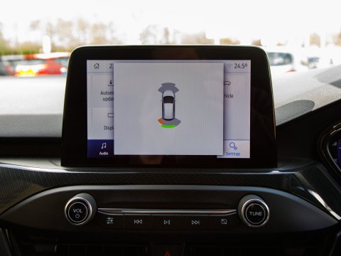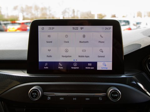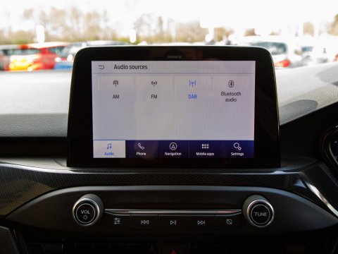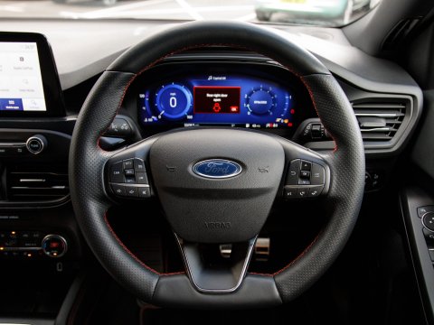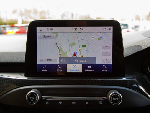 This 2020 Ford Focus ST-Line X Edition is a Euro 6 compliant 1.0L petrol model, offering an impressive fuel economy of 53 mpg. It comes equipped with a range of desirable features including wireless phone charging, Air Conditioning and a heated steering wheel for added comfort, and automatic headlights for convenience. Navigating and parking are made easier with front and rear parking sensors and the Ford SYNC3 DAB Navigation System, which seamlessly integrates with Android Auto and Apple CarPlay for your connectivity needs.