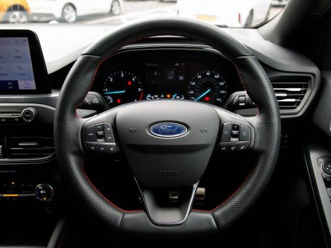 Discover this 2020 Ford Focus ST-Line X with exceptionally low mileage for its year, having covered just 27,908 miles. This Euro 6 compliant 1.5L diesel model offers a compelling blend of style and practicality. Inside, you'll find the advanced Ford SYNC3 DAB Navigation System, complete with Android Auto and Apple CarPlay for seamless smartphone integration, alongside Bluetooth connectivity. Comfort is assured with DEATC dual-zone electronic automatic temperature control and heated front seats for both driver and passenger. Navigating tight spaces is made effortless thanks to front and rear parking sensors, further enhanced by parking assistance systems. Automatic headlights also add to the convenience.