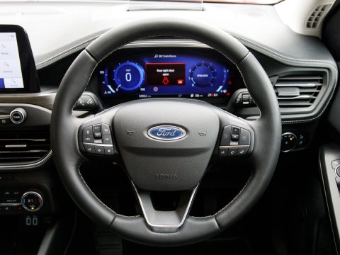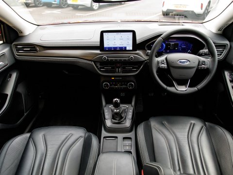 This 2020 Ford Focus T Vignale Edition offers a refined driving experience with its 1.0 litre petrol engine. As a Euro 6 compliant vehicle, it meets modern emission standards. This particular model comes equipped with a suite of convenient features designed to enhance your journey, including a rear wide view camera with parking assistance, and front and rear parking sensors. Inside, you'll find the Ford SYNC3 DAB Navigation System, which seamlessly integrates with Android Auto and Apple CarPlay, alongside Bluetooth connectivity. For added comfort during colder months, the Focus Vignale Edition boasts a heated steering wheel, and automatic headlights ensure optimal visibility.
