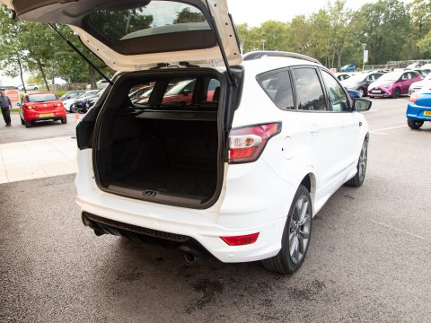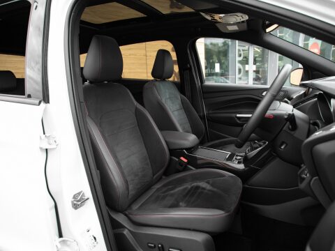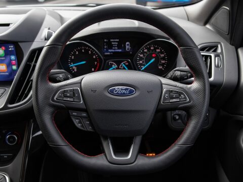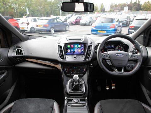Discover this exceptional 2019 Ford Kuga T ST-Line Edition, boasting remarkably low mileage for its year at just 30,476 miles. This Euro 6 compliant petrol model is presented in the desirable ST-Line Edition trim, offering a compelling blend of style and technology. Inside, you'll find the Ford SYNC3 DAB Navigation System, complete with Android Auto and Apple CarPlay for seamless smartphone integration, alongside Bluetooth connectivity. Comfort is assured with DEATC Dual-Zone Electronic Automatic Temperature Control, allowing both driver and passenger to set their preferred climate. The panoramic sunroof floods the cabin with natural light creating an airy feel to the car.