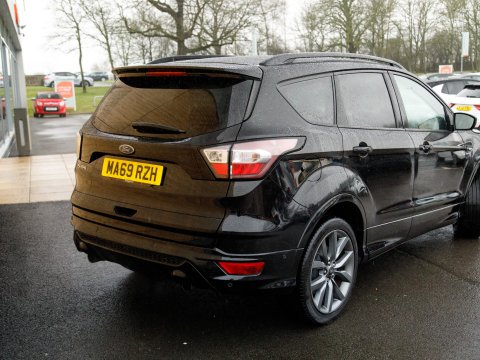 This 2019 Ford Kuga T ST Line Edition presents an exceptional opportunity with its remarkably low mileage of just 21,755 miles. This Euro 6 compliant 1.5 litre petrol model, finished in the sporty ST Line trim, offers a wealth of desirable features. Navigating tight spaces is made effortless thanks to the Enhanced Active Park Assist, which includes front and rear parking sensors. Inside, you'll find comfort and convenience with Dual Zone Electronic Automatic Temperature Control, ensuring the perfect cabin climate for all occupants. The Ford SYNC 3 DAB Navigation system is a standout feature, seamlessly integrating your smartphone with Android Auto and Apple CarPlay, alongside Bluetooth connectivity for calls and music. Enjoying the open air is a pleasure with the power opening panoramic roof, creating a bright and airy feel.