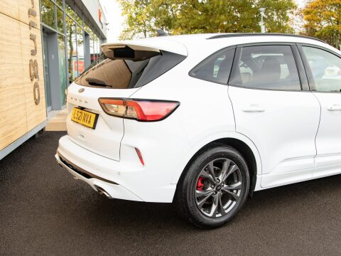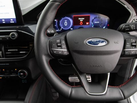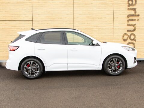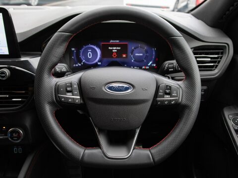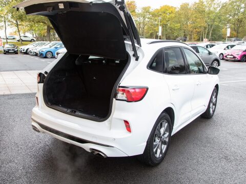 This 2021 Ford Kuga ST-Line Edition offers an exceptional blend of style and efficiency, making it a standout choice. Powered by a 1.5L Diesel Engine that meets Euro 6 emission standards, this automatic transmission vehicle features an electronic rotary gearshift dial for a modern driving experience. You'll appreciate the convenience of steering wheel mounted paddle shifts, full LED headlamps for superior visibility, and both front and rear parking sensors to assist with manoeuvring. Inside, the cabin is equipped with a mobile phone wireless charging pad, ensuring your devices stay powered on the go. Sat Nav keeps you on track on those longer journeys.