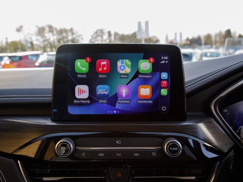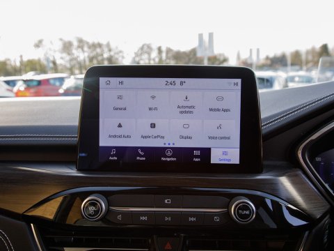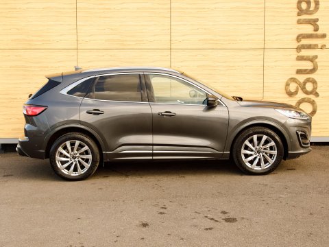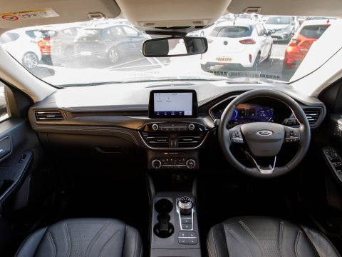 This 2023 Ford Kuga Vignale offers an exceptional ownership experience, having been meticulously maintained by just one owner from new. As a premium Vignale model, it boasts a sophisticated 2.5 litre petrol hybrid engine, meeting Euro 6 emissions standards. Inside, you'll find a wealth of technology, including the Technology Pack with a Head Up Display and LED headlights, alongside the Driver Assistance Pack which features Adaptive Cruise Control and Blind Spot Assistance. Comfort is paramount with a 10 way power adjustable driver's seat that includes memory settings, while the Ford SYNC3 DAB Navigation System seamlessly integrates Android Auto and Apple CarPlay, all delivered through a premium branded sound system. The Winter Pack ensures year round comfort with heated seats and a heated steering wheel. The Rear Parking camera eases manoeuvring, while Climate control keeps you comfortable.