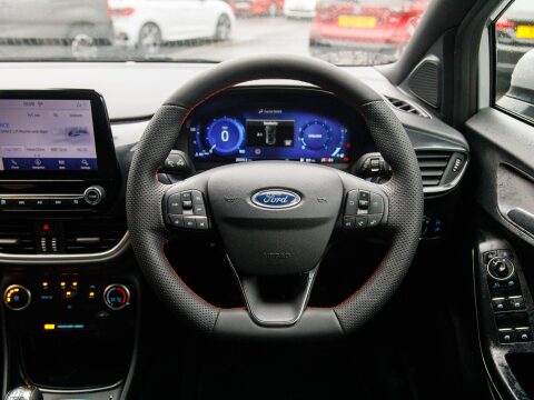 This 2022 Ford Puma ST Line offers exceptional value with only one owner and a remarkably low mileage of 20,224 miles for its age. This stylish compact SUV is powered by an efficient 1.0 litre petrol hybrid engine, meeting Euro 6 emission standards. Inside, you'll find the user friendly Ford SYNC 3 Navigation system, complete with Android Auto and Apple CarPlay for seamless smartphone integration, plus Bluetooth connectivity. For added convenience, it includes rear parking sensors with parking assistance and manual air conditioning to keep you comfortable on every journey.