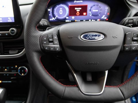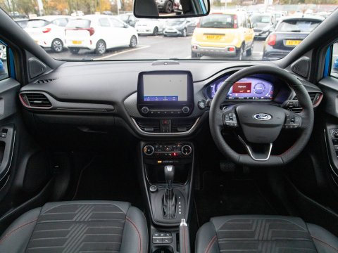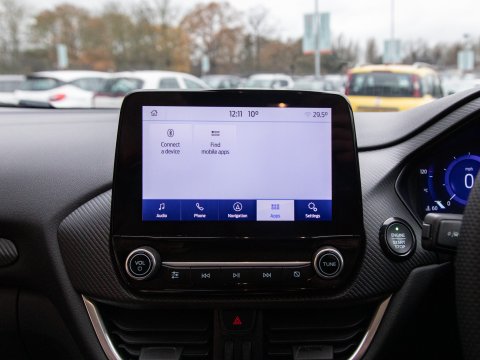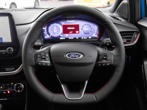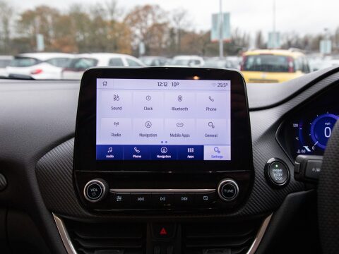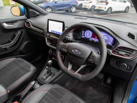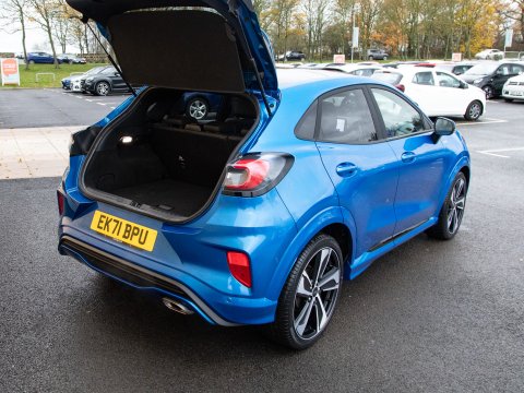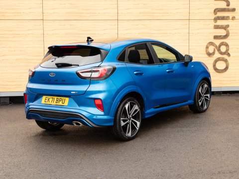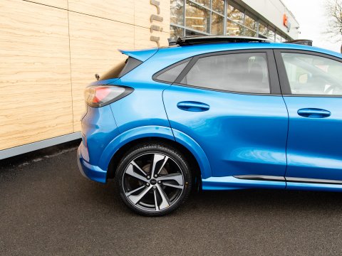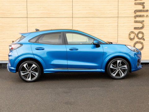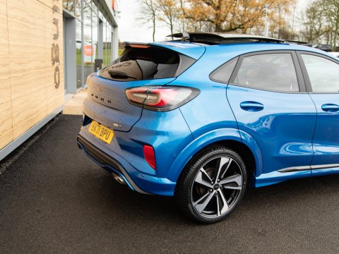 This 2021 Ford Puma ST-Line X offers a blend of sporty design and advanced technology, making it a compelling choice. Powered by a 1.0 litre petrol engine, this Euro 6 compliant model boasts impressive fuel economy, achieving up to 50 miles per gallon. The ST-Line X trim level enhances the driving experience with a host of desirable features. These include a striking panorama roof that can be opened for an airy cabin feel, and a comprehensive Driver Assistance Pack. This pack incorporates Blind Spot Assistance, Adaptive Cruise Control, and front and rear parking sensors with a rear camera, ensuring confidence on every journey. Further enhancing its appeal are the stylish 19 inch matt black machined finish alloy wheels and an ST-Lined flat-bottomed premium Sensico steering wheel.