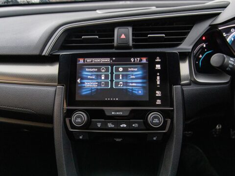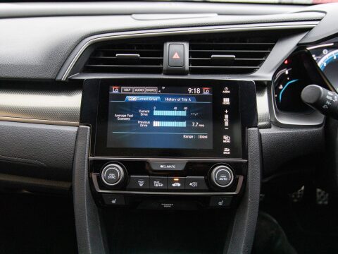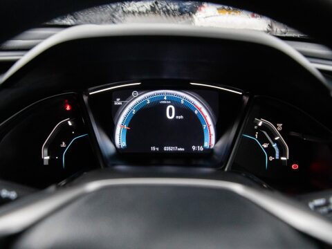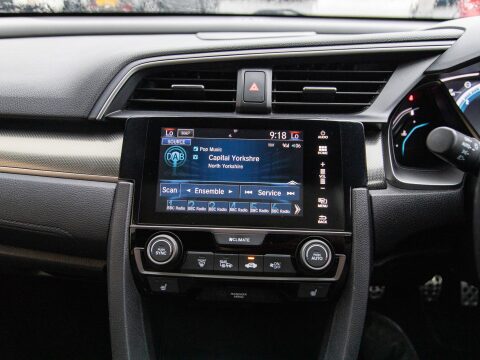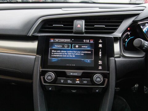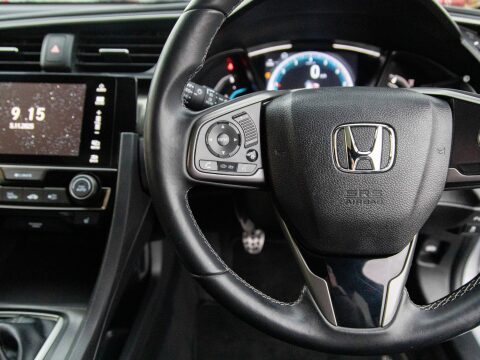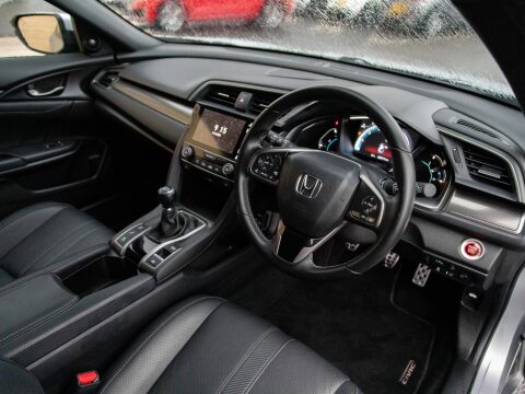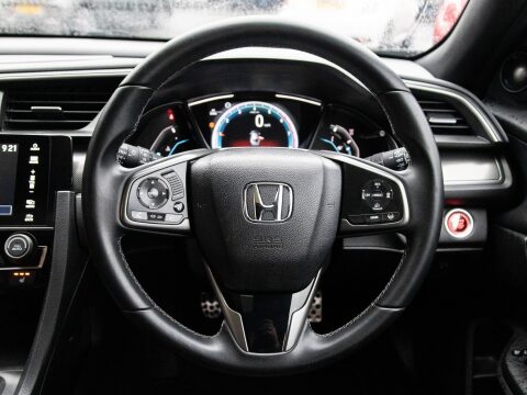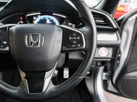 This 2019 Honda Civic VTEC Turbo EX presents an exceptional opportunity with its remarkably low mileage of just 35,211 miles for its age. This Euro 6 compliant 1.0 litre petrol model, finished in the EX trim, offers a refined driving experience. It comes equipped with practical features such as front and rear parking sensors with rear camera, complete with parking assistance, and a dual climate control system for personalised comfort. The convenience of smart entry and start, including keyless entry, simplifies your journeys, while heated front seats ensure warmth during colder months. Panoramic sunroof adds an open, airy feel to the cabin, while the Sat Nav keeps you on track on those longer journeys.