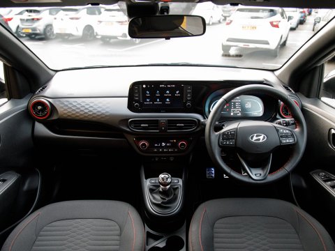 This 2024 Hyundai i10 T-GDi N Line presents an exceptional opportunity with its remarkably low mileage of just 5350 miles, a testament to its careful single ownership. This stylish N Line trim vehicle is powered by an efficient 1.0L Petrol Engine, meeting Euro 6 emission standards and contributing to its low CO2 emissions. Inside, you'll find a host of convenient features designed for modern driving, including keyless entry for effortless access, Bluetooth connectivity with voice recognition for seamless communication, and wireless Apple CarPlay to keep your favourite apps accessible. Comfort is also a priority, with heated front seats and climate control air conditioning ensuring a pleasant journey in all conditions. Sat Nav keeps you on track on those longer journeys, while the Rear Parking Camera eases manoeuvring.