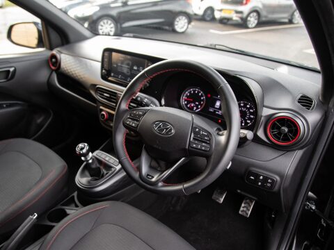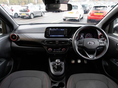 Discover this 2021 Hyundai i10 T-GDi N Line, a stylish and well equipped compact car. This Euro 6 compliant model boasts a 1.0 litre petrol engine and features a desirable N Line trim. Inside, you'll find comfort with Air Conditioning and Climate Control, while staying connected is effortless thanks to Navigation complete with Bluetooth Connectivity with Voice Recognition and Wireless Apple CarPlay. Navigating tight spaces is made easier with the Rear View Parking Camera, and the Auto Light Control ensures your headlights are always on when needed.