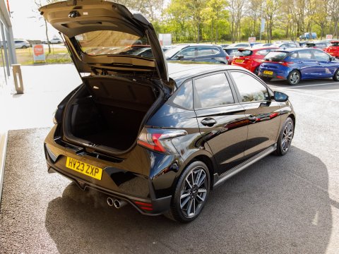 This 2023 Hyundai i20 T GDi N Line presents an exceptional opportunity with its remarkably low mileage of just 13127 miles and a single owner from new. This Euro 6 compliant 1.0 litre petrol hybrid model, finished in the sporty N Line trim, offers a blend of efficiency and engaging driving dynamics. It comes equipped with modern conveniences such as LED headlights with static cornering, a rear view parking camera for easier manoeuvring, and climate control featuring an automatic de fog system for the front windscreen. Sat Nav keeps you on track on those longer journeys, while Apple CarPlay keeps you connected.