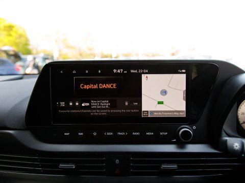 This 2023 Hyundai i20 T-GDi Premium presents an exceptional opportunity with its remarkably low mileage of just 6244 miles, having been owned by only one careful owner. This Euro 6 compliant model boasts a 1.0L Petrol Hybrid engine, offering an efficient and responsive driving experience. Inside, you'll find a host of premium features designed for comfort and convenience, including Climate Control with an Automatic De-Fog System for the front windscreen, a Heated Steering Wheel for those colder mornings, and seamless Bluetooth Connectivity for your devices. The Hyundai i20 T-GDi Premium stands out with its advanced LED Headlights featuring Static Cornering, ensuring improved visibility when navigating junctions. Parking is made simpler with the integrated Rear-View Parking Camera. Sat Nav keeps you on track on those longer journeys, while Air Conditioning keeps you comfortable.