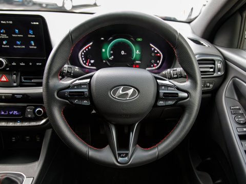Boasting exceptionally low mileage for its age, this 2023 Hyundai i30 T-GDi N Line presents a superb opportunity. With only one owner since new and a mere 8516 miles on the clock, this Euro 6 compliant petrol hybrid is in excellent condition. The N Line trim enhances its sporty appeal, and you'll appreciate the convenience of dual zone climate control, ensuring comfort for all occupants. Stay connected on the go with seamless Apple CarPlay and Android Auto integration, while LED headlights provide clear visibility. Sat Nav keeps you on track on those longer journeys, while Parking Sensors ease manoeuvring.