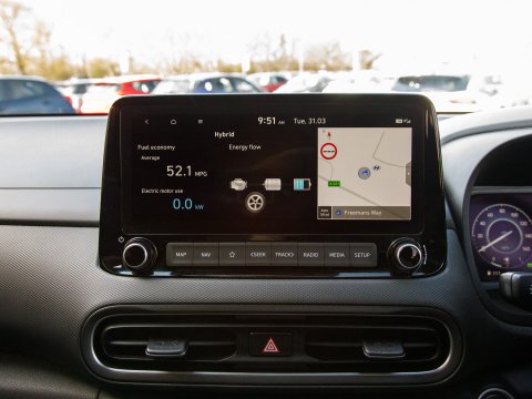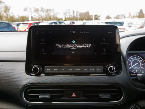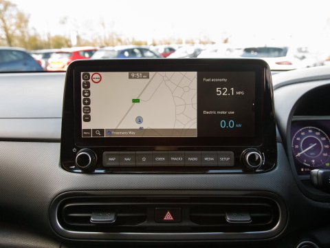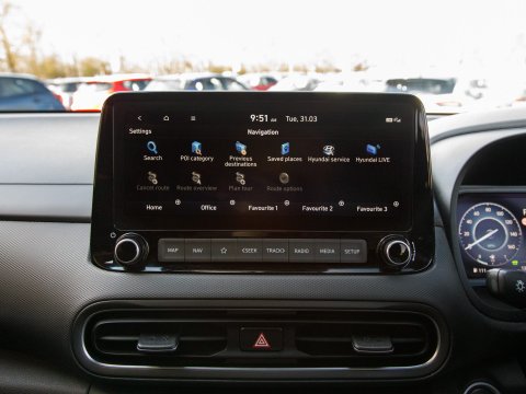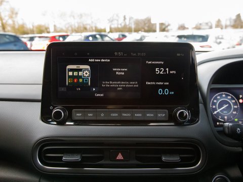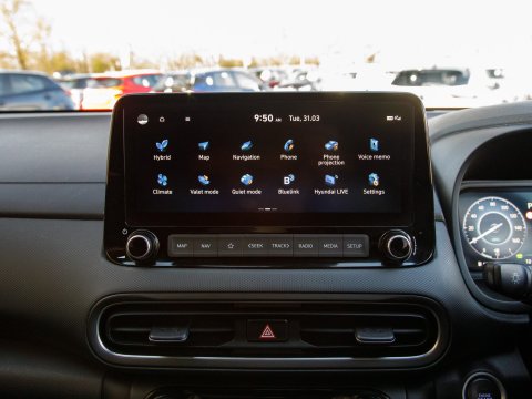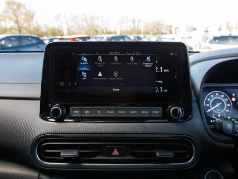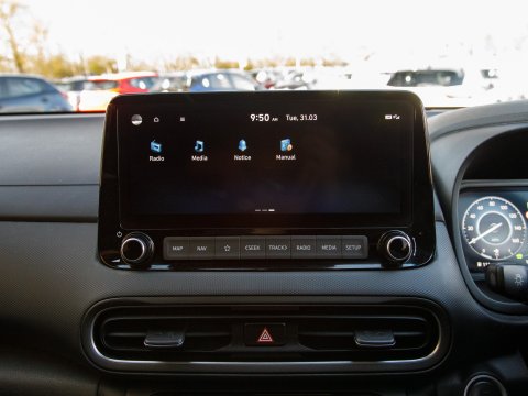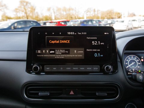 This 2022 Hyundai KONA h GDi Premium is a standout choice, having been owned by just one person and boasting exceptionally low mileage of only 19569 miles for its age. This Euro 6 compliant 1.6 litre petrol hybrid model, presented in the Premium trim, offers a comfortable and convenient driving experience. Inside, you'll find desirable features such as heated front seats and a heated steering wheel, perfect for colder mornings. For added convenience, it includes a wireless phone charging pad and a rear parking system complete with a camera and guidance, alongside rear parking sensors to make manoeuvring easier. Sat Nav keeps you on track on those longer journeys, while Air Conditioning keeps you comfortable during those warmer months.