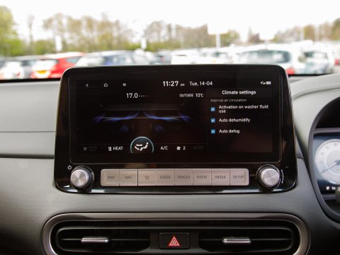 With remarkably low mileage of 17,596 miles for its 2023 registration, this Hyundai KONA Premium Electric presents an exceptional opportunity. This well maintained electric vehicle boasts a substantial 68 kWh battery with a battery health of 94%, offering a maximum range of 300 miles when new. It comes equipped with advanced features including Full LED headlights, a heated steering wheel for those colder journeys, and Smart Adaptive Cruise Control with Stop and Go functionality for effortless driving. Parking is made simpler with front and rear parking sensors, while the climate control system includes an automatic de fogging feature for the front windscreen. Sat Nav keeps you on track on those longer journeys.
