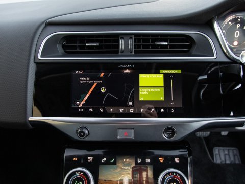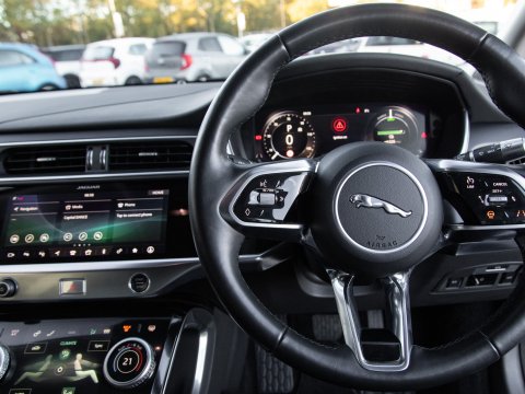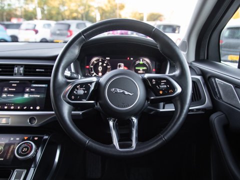 Experience the future of driving with this 2021 Jaguar I-PACE 400 SE, a sophisticated electric vehicle designed for performance and everyday practicality. This Four Wheel Drive model boasts a substantial 90 kWh battery with a battery health of 92%, offering a maximum range of 280 miles when new. Enjoy the convenience of Bluetooth connectivity, premium LED headlights with signature daytime running lights, and a 2-Zone climate control system to ensure comfort for all occupants. The 12-way heated electric memory front seats provide exceptional support and adjustability, while front and rear parking aids, including parking assistance sensors and rear camera make manoeuvring effortless.