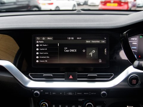 This 2019 Kia Niro GDi 4 is a superb example of a well maintained hybrid vehicle. As a Euro 6 compliant model, it features a 1.6 litre petrol hybrid engine, offering an efficient and smooth driving experience. This particular Niro 4 trim level comes equipped with a premium 8 speaker JBL sound system, complete with a subwoofer, external amplifier and front centre speaker for an immersive audio experience. For enhanced safety and convenience, it includes a reversing camera system, front and rear parking sensors, and a blind spot detection system with rear cross traffic alert. Sat Nav keeps you on track on those longer journeys, while Climate Control keeps you comfortable.