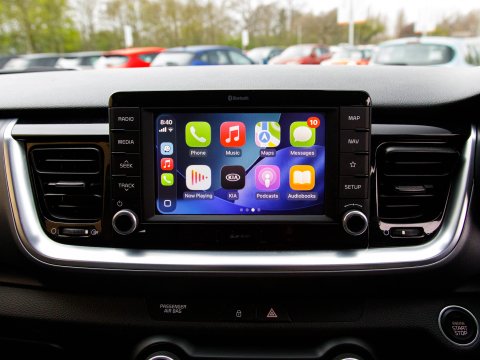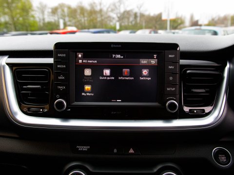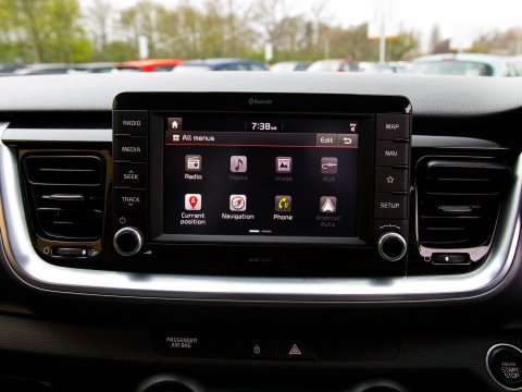 Discover this 2019 Kia Stonic T GDi 4 with exceptionally low mileage, having covered just 28,379 miles. This Euro 6 compliant 1.0 litre petrol model offers a compelling blend of modern technology and comfort. Inside, you'll find the convenience of both Apple CarPlay and Android Auto, both with voice control, keeping you connected on the go. For added peace of mind, it features Blind Spot Detection with Rear Cross Traffic Assist, enhancing your awareness of your surroundings. The comfort of Air Conditioning, heated front seats and a heated steering wheel ensures a pleasant driving experience in any weather. The Rear Parking Camera eases manoeuvring.